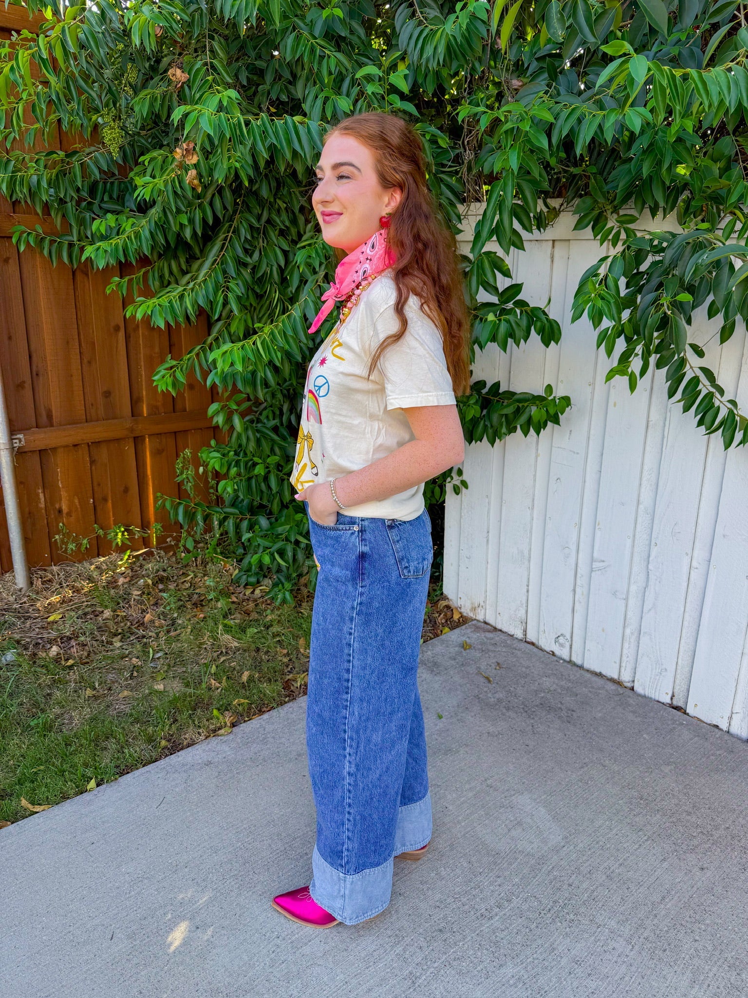 This “Happy Teacher Club” tee is the definition of cheerful with its colorful doodles—think rainbows, smiley faces, stars, and a sweet bow—surrounding the playful handwritten text.