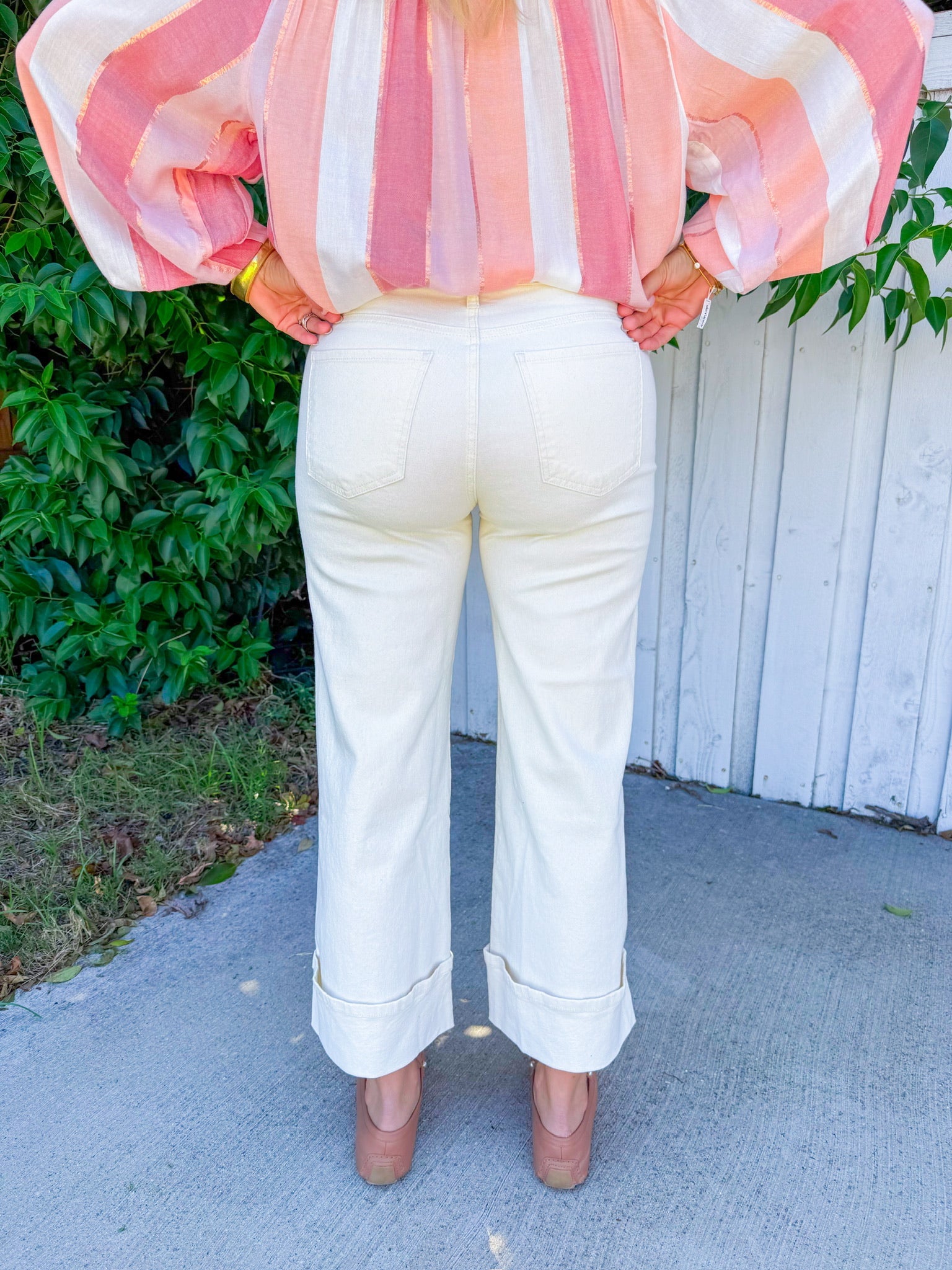 Meg High Rise Wide Leg Roll Up Jeans - Candle